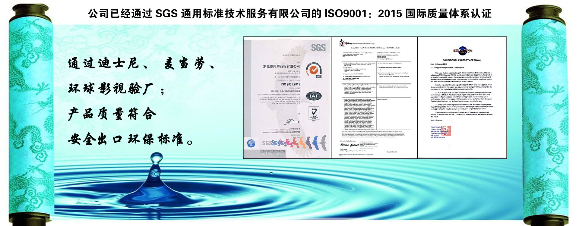 東莞市同輝商標(biāo)輔料及包裝印刷有限公司是一家專業(yè)從事商標(biāo)制造、包裝印刷的企業(yè),主營(yíng)生產(chǎn)和銷售:各類織嘜商標(biāo),織章,印刷商標(biāo),印嘜,標(biāo)簽印刷,不干膠商標(biāo),絲印商標(biāo),熱轉(zhuǎn)印標(biāo),無感商標(biāo),燙嘜,皮牌商標(biāo),電壓商標(biāo)、商標(biāo)帶、繡花標(biāo),布貼標(biāo)、皮貼標(biāo)、商標(biāo)吊牌,彩卡,折盒等廣泛用于各行各業(yè)。工廠經(jīng)過多年的發(fā)展與開拓,規(guī)模日益發(fā)展壯大。從設(shè)計(jì)制作、工程研發(fā)、生產(chǎn)制造、產(chǎn)后加工、品檢、物流配送、售后服務(wù)等一套完整的優(yōu)質(zhì)服務(wù)體系,及優(yōu)秀的經(jīng)營(yíng)管理團(tuán)隊(duì)。已通過SGS ISO9001:2008(新版是2015版)國(guó)際質(zhì)量體系認(rèn)證,產(chǎn)品質(zhì)量符合各國(guó)安全出口環(huán)保標(biāo)準(zhǔn)。承蒙國(guó)內(nèi)外客戶的大力支持,目前已有許多國(guó)際著名品牌定點(diǎn)授權(quán)我公司生產(chǎn),并是通過全球迪士尼FAMA認(rèn)證驗(yàn)廠,麥當(dāng)勞驗(yàn)廠,環(huán)球影視驗(yàn)廠的供應(yīng)商,是各行業(yè)值得信賴并具有實(shí)力的合作伙伴。
